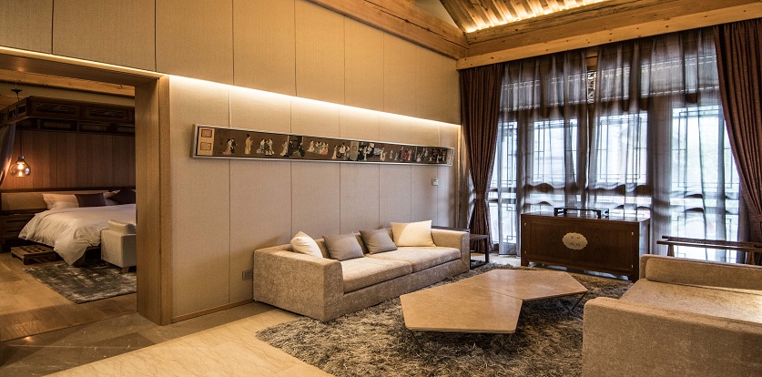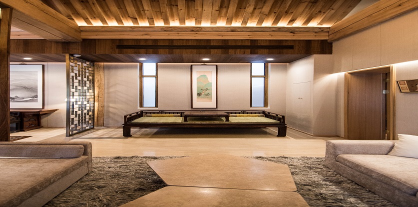 項目結合了中西方傳統和現代藝術。起居室的靈感源于幽靜的山脈,既有中式家具的運用,又不乏現代感。