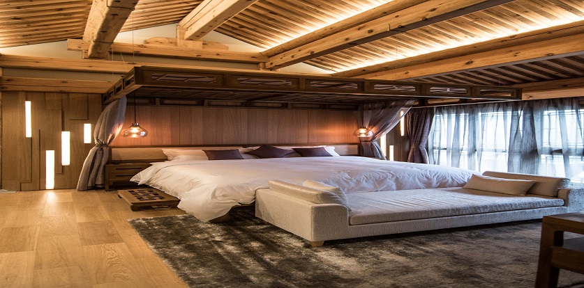 四合院精品酒店室內設計項目位于北京紫禁城以東北方向。項目采用傳統中國建筑四合院概念,由圍繞著一個中庭的四個有著不同獨立功能的區域構成。這四個區域包括一個起居室,一間餐廳,主臥和標準客房。花園對整體視覺效果和設計過程十分重要。通過運用玻璃墻,從四個區域都可以直接看到花園。這四個區域雖然功能獨立,但通過花園相互連通。